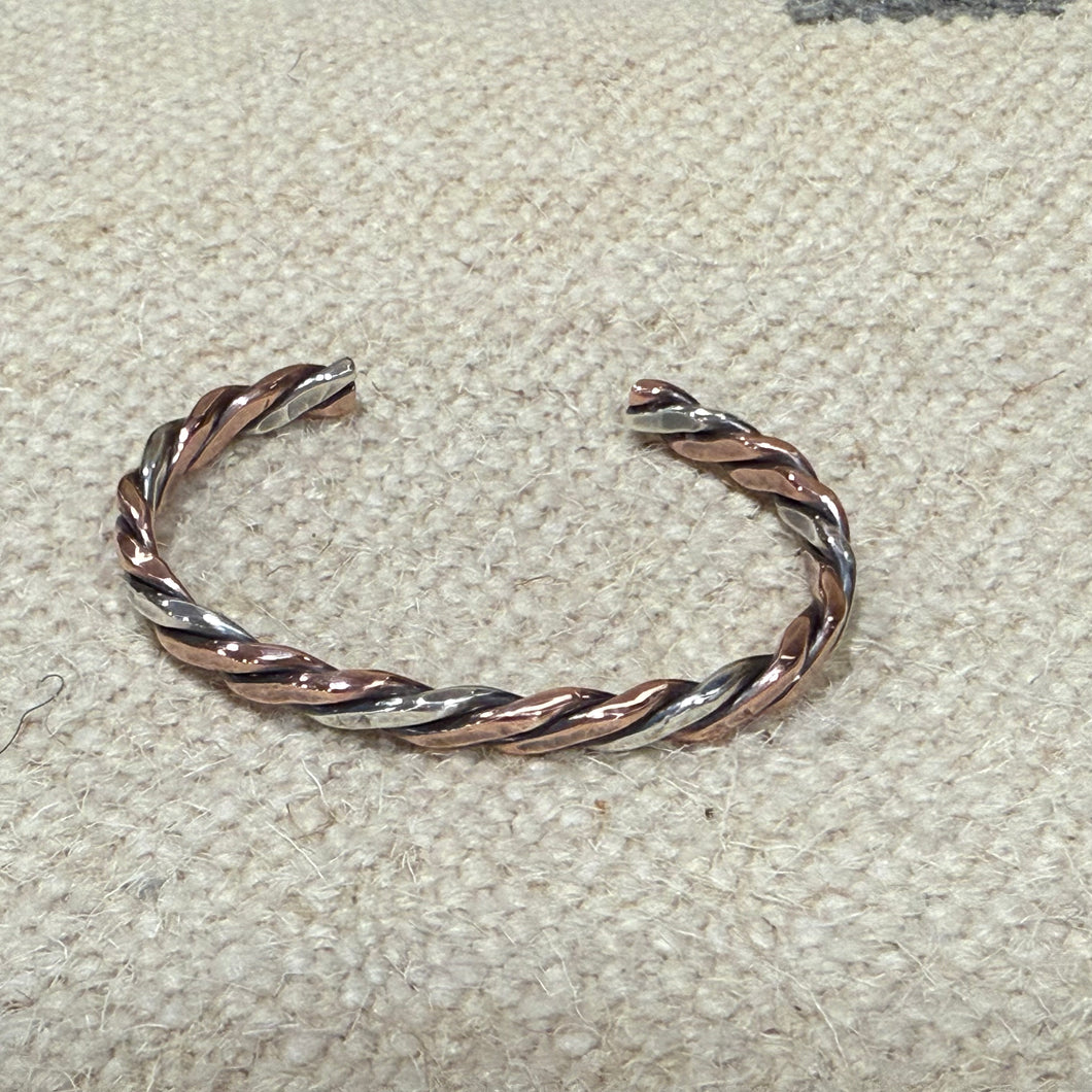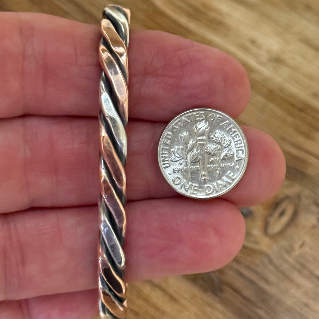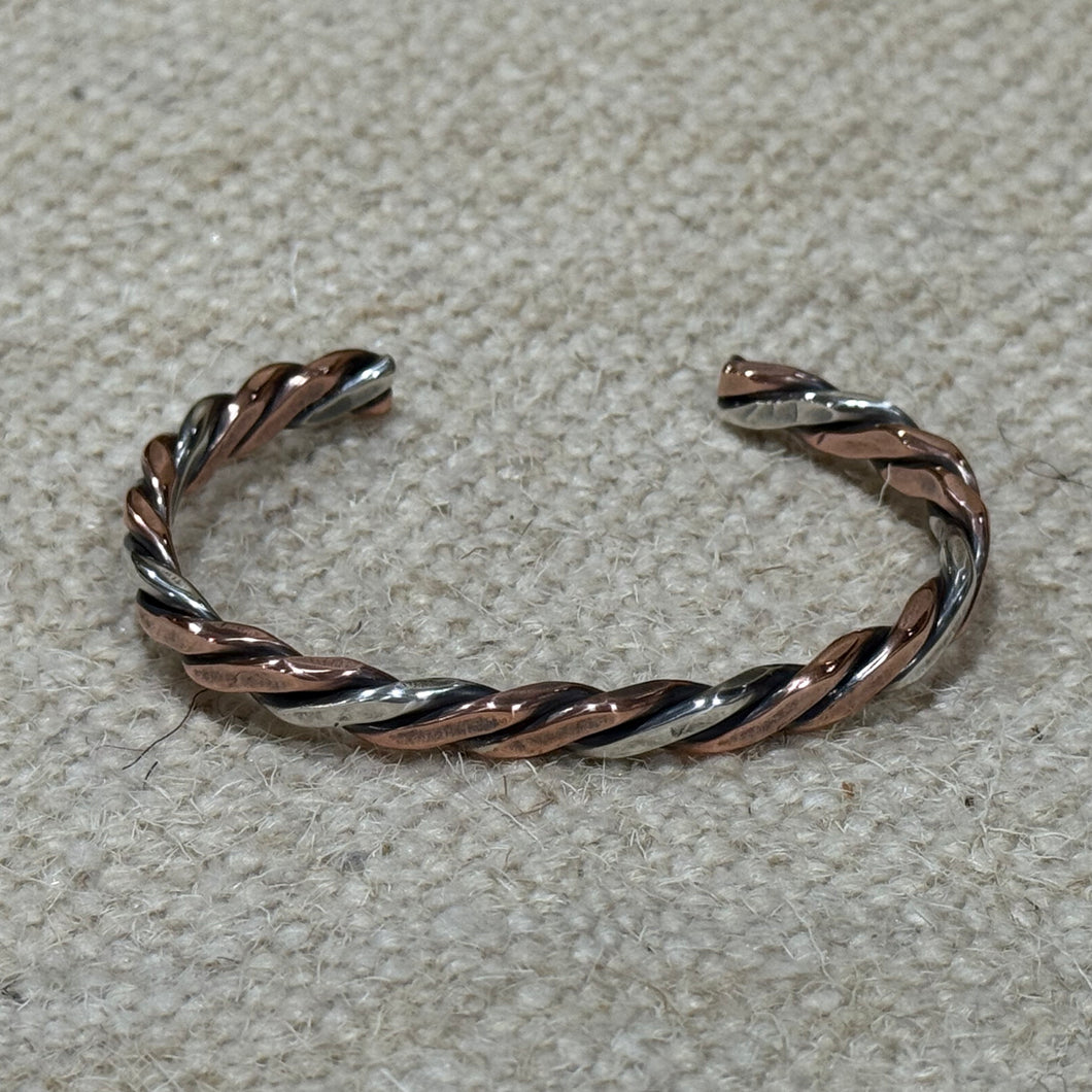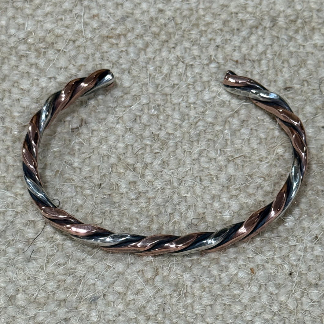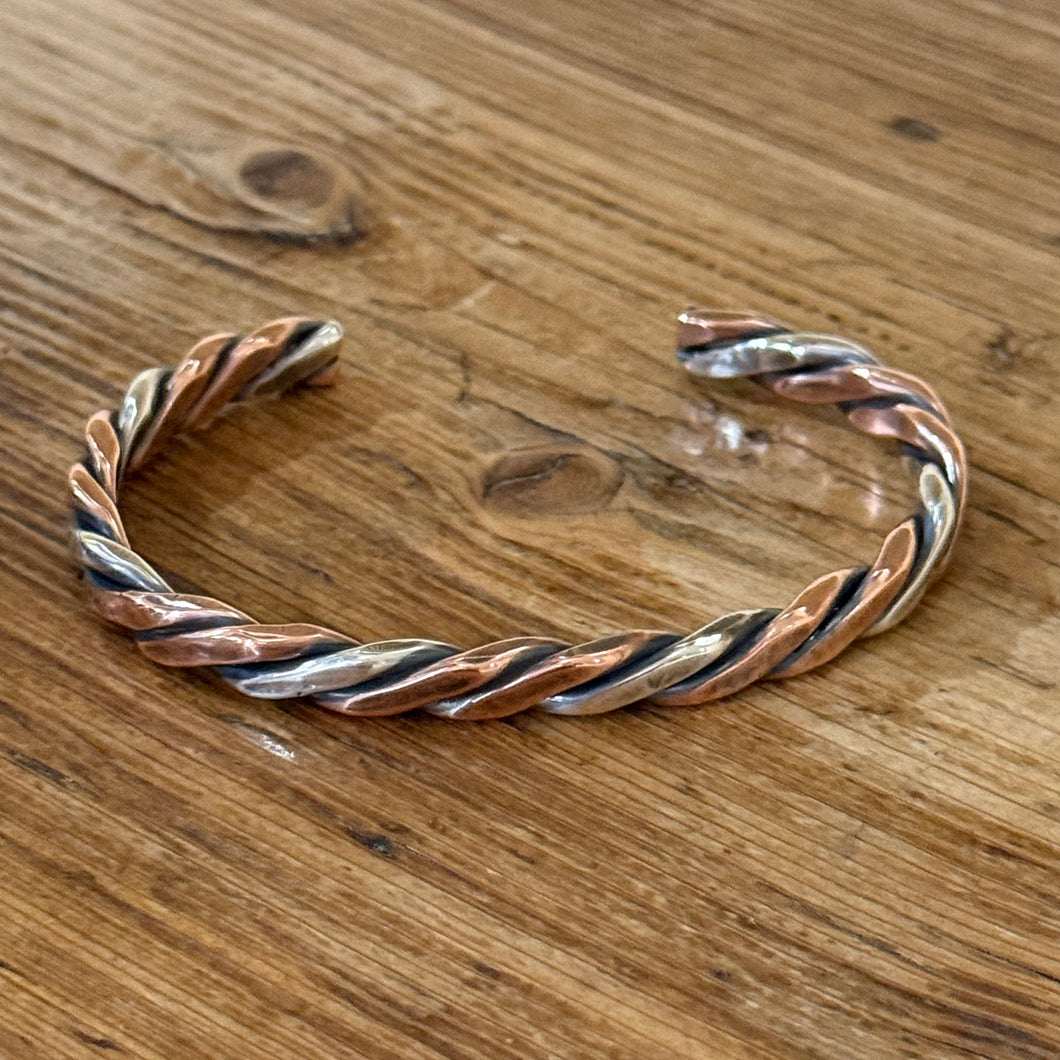 Twisted Copper and Sterling Silver Cuff Bracelet