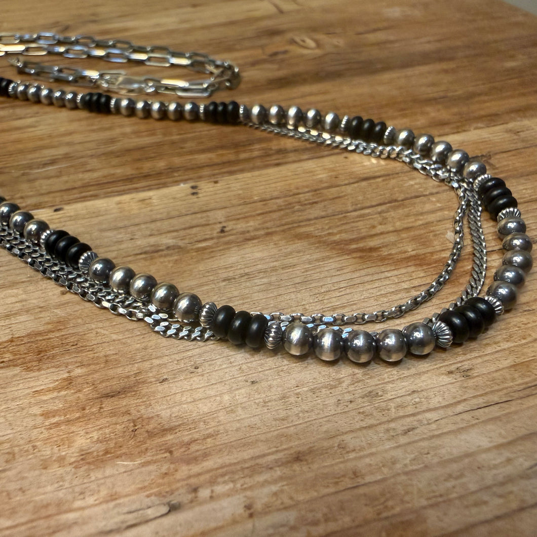 Sterling Silver Navajo Pearl & Black Onyx Multi Strand Necklace